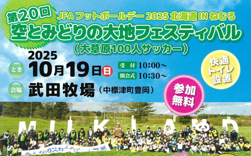 これぞ中標津!と言いたくなるような、広大な牧草地が舞台のサッカーイベントです 。大人も子どもも一緒になって、緑のじゅうたんの上でボールを追いかけます。勝敗よりも、この開放感あふれるロケーションで体を動かす楽しさが一番の魅力です。