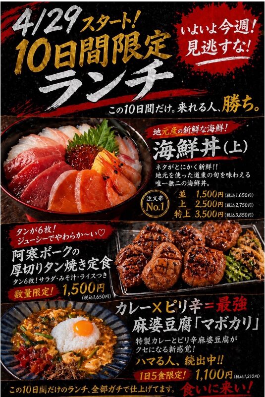 この10日間だけの特別なランチ、 絶対に見逃せません!