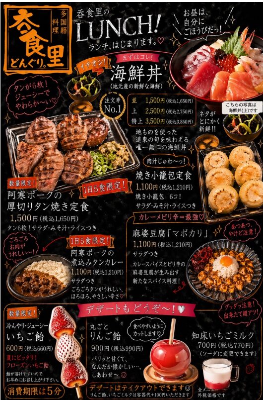 中標津で大人気の居酒屋「多国籍料理 呑食里」さんが、