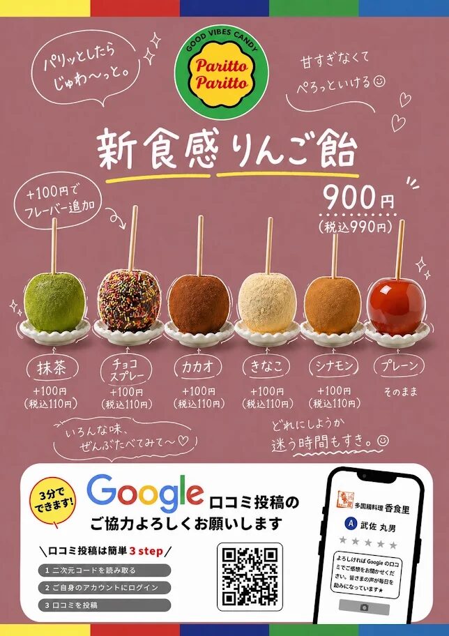 ・丸ごとりんご飴 900円(税込990円) 食べやすいようにカットもしてくれます♪