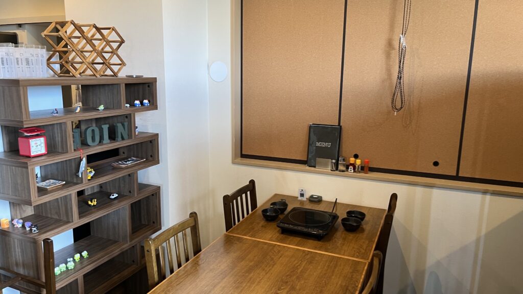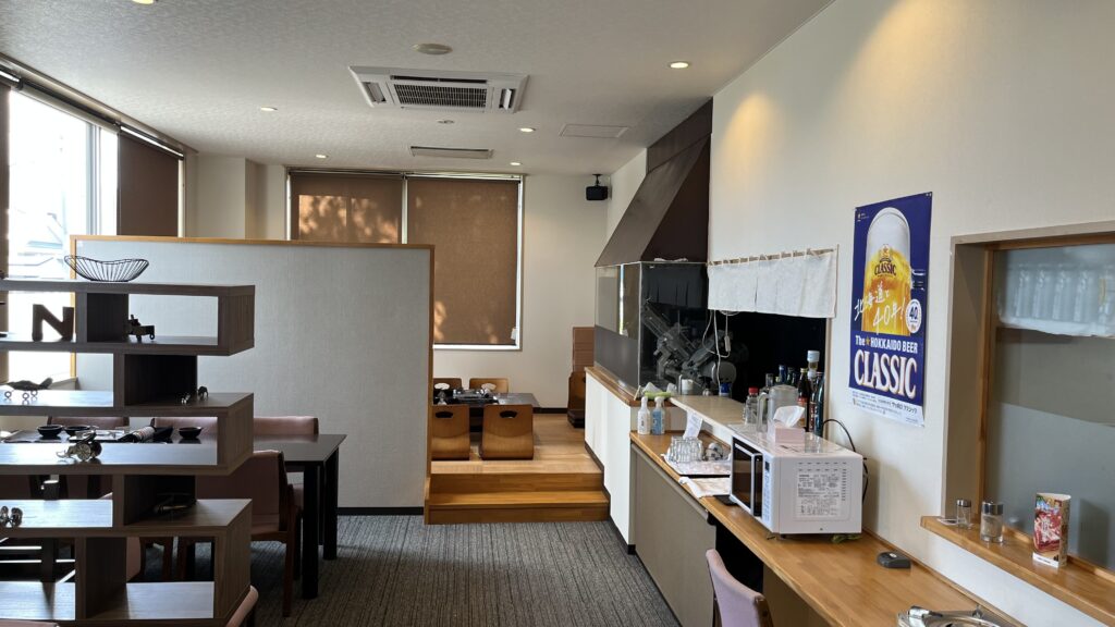 - 小上がり席: 4名掛けが2卓あり、ゆったり足を伸ばせます。
