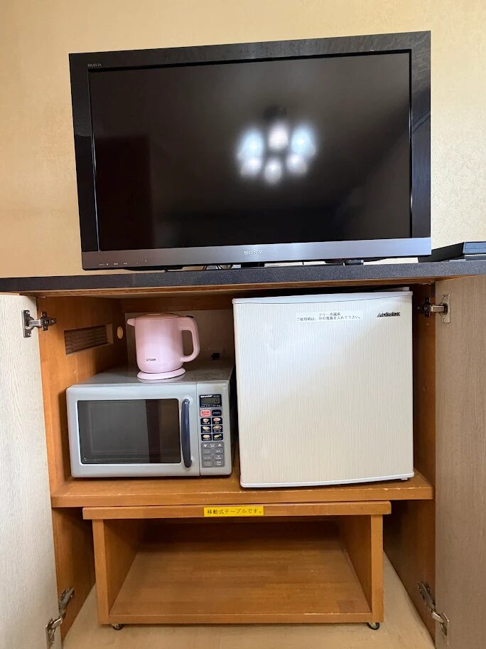 お部屋には電子レンジや冷蔵庫も完備され、一般的なアメニティ(シャンプーやタオル類など)もしっかり揃っています。