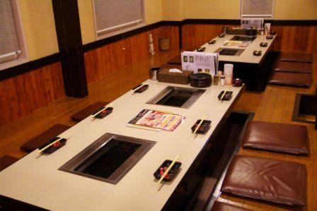 店内には、掘りごたつタイプの大人数席から、少人数向けの半個室席まで用意。