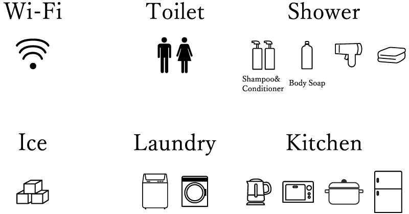 - かゆい所に手が届く!充実の「共用設備」24時間使えるキッチン、女性専用シャワー、ランドリー、無料駐車場…。素泊まりホステルのイメージを覆す充実ぶりで、ビジネスから観光、長期滞在までどんとこい!