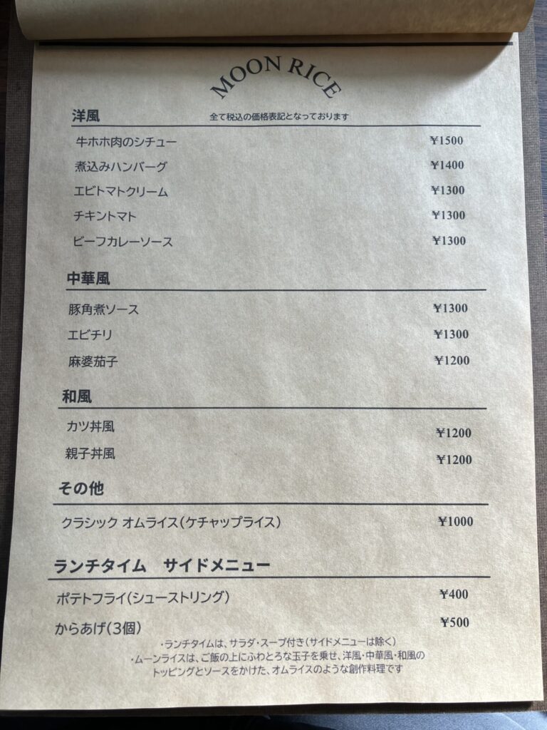 具材の個性を引き立てる「白米」スタイルのオムライス。 「cafe&kitchen MOON」でしか味わえない、素材の旨味が詰まった創作メニューの数々は必食です。 ランチ(11:00〜)はもちろん、ディナー(17:00〜)でもこれらのメニューを楽しめます。本日オープンしたばかりの新しいお店で、ぜひお気に入りの「MOONRICE」を見つけてください。