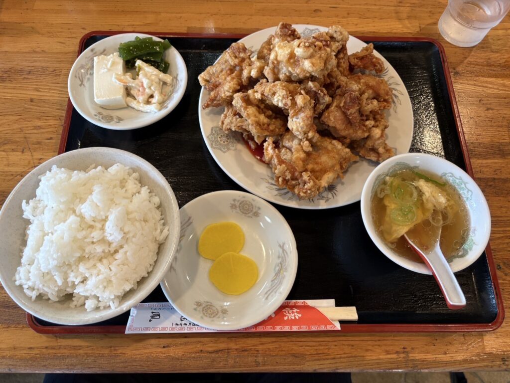 - からあげ定食 圧倒的な存在感のからあげ定食。サクッとした衣をまとったからあげは、噛みしめるたびに肉汁があふれ出す。口いっぱいに広がる旨味と、ご飯をかきこむ幸せ。シンプルながらも、とてつもない満足感を与えてくれます。