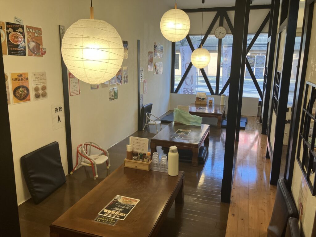 「知床らーめん なかがわ」の店内は、一人でも気軽に立ち寄れるカウンター席から、ご家族やグループでゆったりとくつろげるテーブル席、小上がり席まで様々なシーンに対応できる造りになっています。温かみのある照明と落ち着いた雰囲気は、食事をより美味しく感じさせてくれます。気取らない居心地の良さが、地元の人々に愛される理由の一つかもしれません。