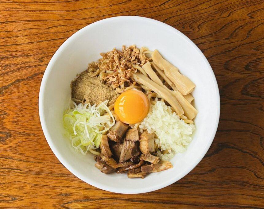 数あるメニューの中でも、特にユニークな存在感を放つのが「まぜそば」です。特製の醤油だれや自家製の「なかしべつミルキーポーク」チャーシュー、そして卵黄などが豪快に盛り付けられており、全体をよく混ぜてから食べるスタイルです。濃厚な旨みと具材の食感が絶妙に絡み合い、食べ応えも抜群の一品です。