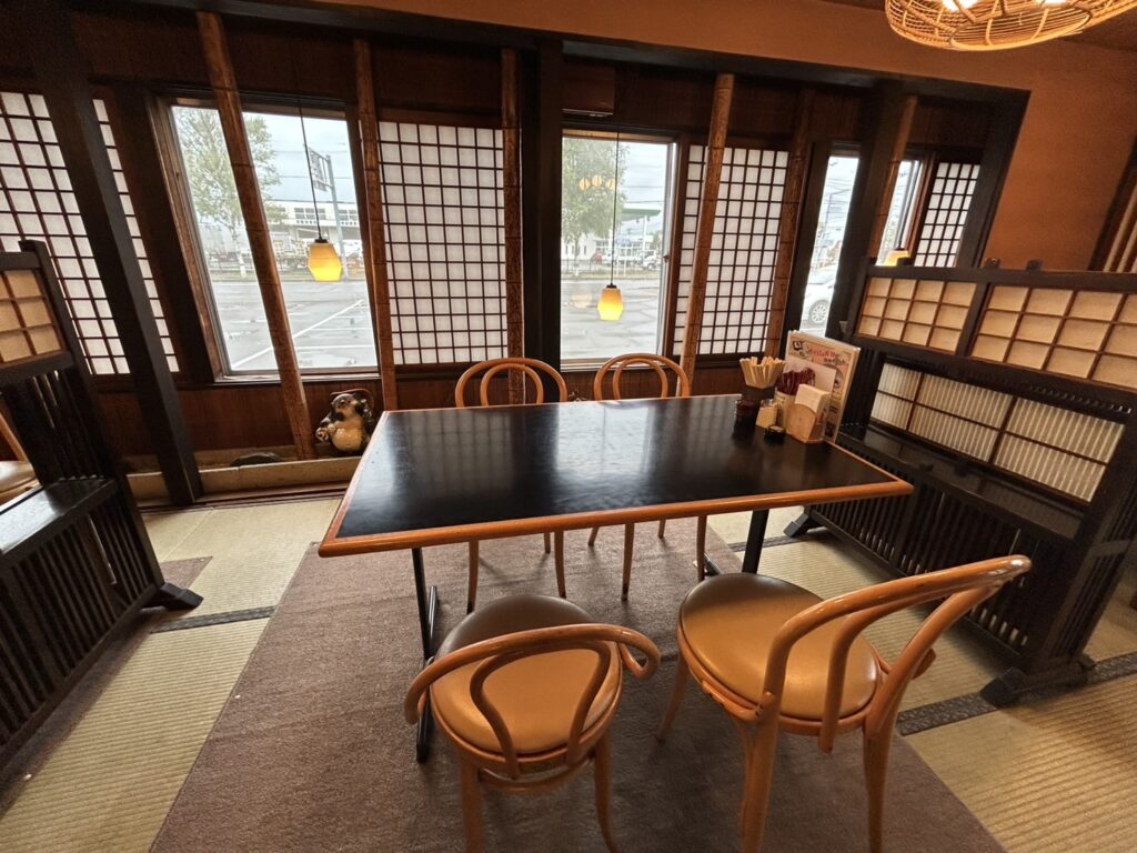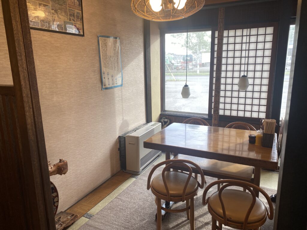 店内は、長年地元の方々に愛されてきたことが伝わる、温かく落ち着いた雰囲気。テーブル席が中心なので、ご年配の方から小さなお子様連れの家族まで、誰もがゆっくりと食事を楽しめます。