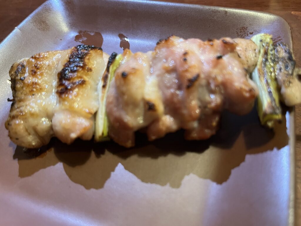 • ねぎま 焼き鳥の王道だからこそ、その丁寧さがわかる一串。備長炭で焼き上げられた知床チキンの皮はパリッと香ばしく、肉はとてもジューシー。見た目にもきれいに整えられた「ねぎま」は、お店の仕事ぶりが光る一品です。