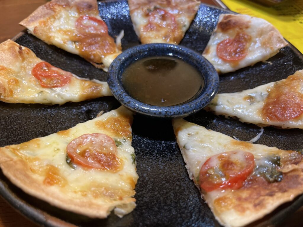 • 焼鳥屋のピザ クリスピーな生地の上に、なんと自家製のつくねを塗り、大葉トマト、そしてたっぷりのチーズを乗せて焼き上げた、独創的な和風ピザ。つくねの旨み、大葉の香り、トマトの酸味、チーズのコクが一体となったその味わいは、一度食べたら忘れられない美味しさ。お酒のつまみにも、〆にもぴったりです。