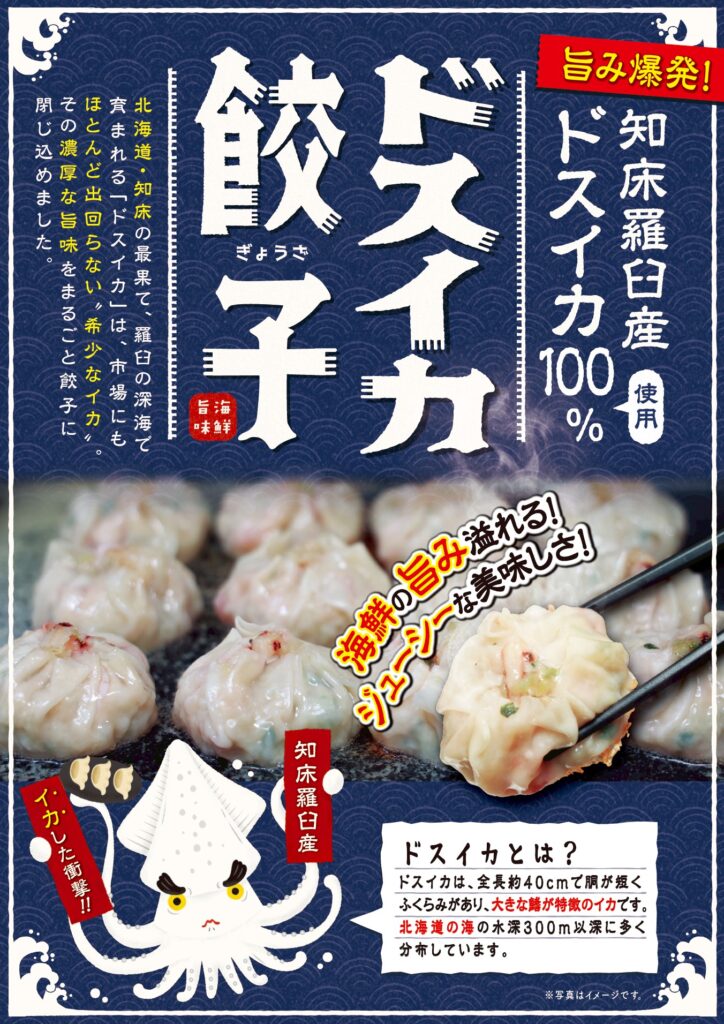 幻の「ドスイカ餃子」は必食: 羅臼産の希少なイカを使った、ここでしか味わえないオリジナルメニューです。