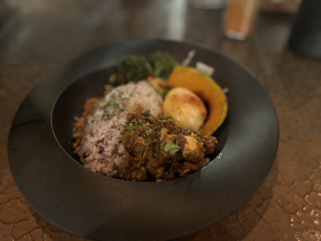 ◆店主こだわりのスパイスカレー この日のカレーは、数種類のスパイスが調和したチキンカレーでした。オーガニック素材を使い、添加物は一切使用していないとのこと。口に入れると、スパイスの豊かな香りが鼻に抜け、後からじんわりと心地よい辛さが広がります。鶏肉はホロホロと柔らかく、野菜の甘みと旨みが溶け込んだルーは、まさに絶品!胃にもたれない優しい味わいで、心も体も満たされる一皿でした。