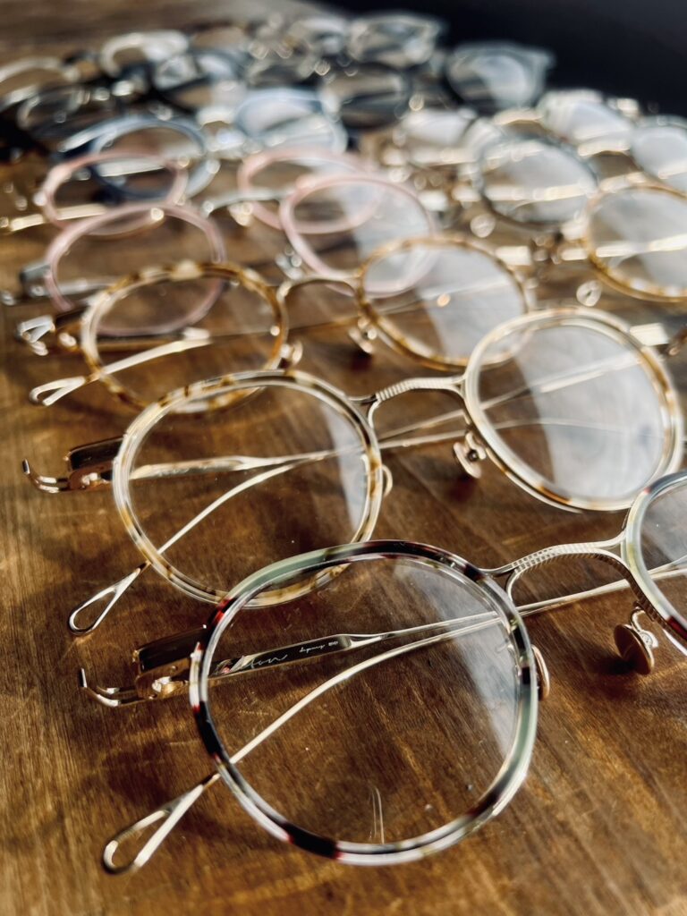 【メガネフレーム】 店内には、山崎さんが選び抜いた国内ブランドのフレームがずらり。定番のクラシックなデザインから、トレンドを取り入れたもの、他のお店ではなかなかお目にかかれないような個性的なデザインまで、見ているだけでもワクワクしてきます。 メガネは視力をサポートするだけでなく、自分らしさを表現する大切なアイテム。ファッションやライフスタイルに合わせて、じっくりお気に入りの一本を探せますよ。