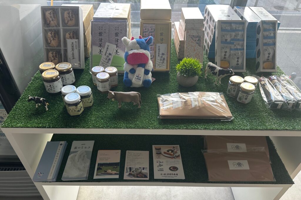 物販コーナーには、標津羊羹、ラ・レトリの乳製品、ポルテのチーズケーキ、竹下牧場のチーズなどなど。地元民なら誰もが知る名品がズラリ。 関東ではなかなかお目にかかれない「中標津牛乳」や「山本牧場」の養老牛放牧牛乳も購入可能です。