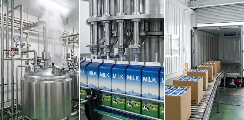 今回は、牧場のバルククーラーからスーパーの棚に並ぶまで、