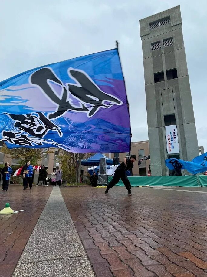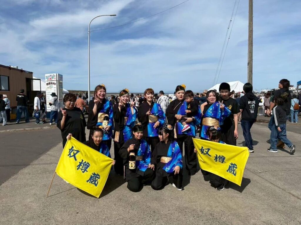中標津のイベントやお祭りで、法被(はっぴ)を翻し、鳴子(なるこ)を響かせる姿を