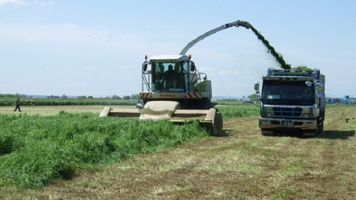 「一番牧草」や「デントコーン」の収穫時期。 畑で映画のような巨大重機が隊列を組んで走っているのを見かけませんか? あれは農家さん個人ではなく、この「コントラクター」が作業している場合が多いです。