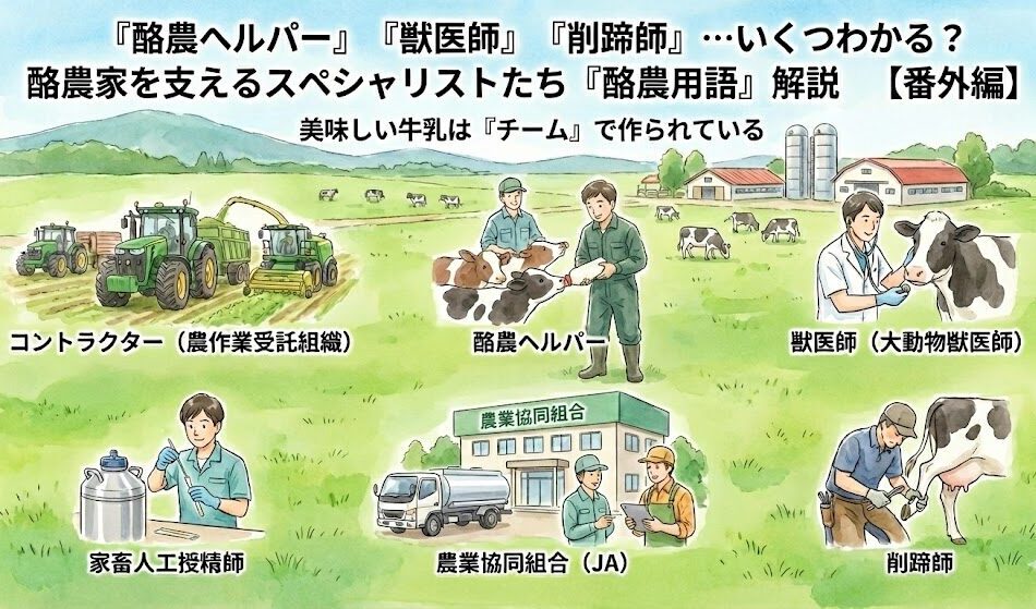 今回は、そんな酪農家を支える専門家たちを紹介します。 道ですれ違う「社名入りの軽トラ」や「作業着の人」を見る目が、今日から変わるはずです!