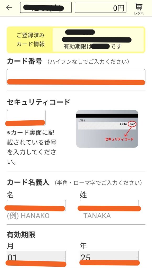 💳 STEP 4:クレジットカードの登録(初回のみ)