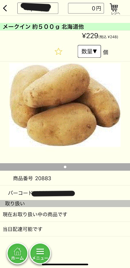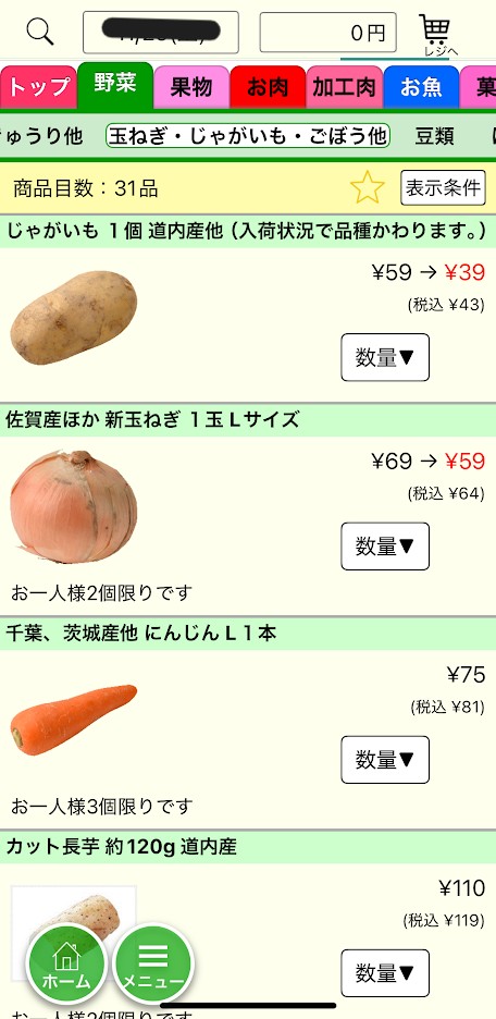欲しい商品があったら、「数量▼」ボタンを押します。
