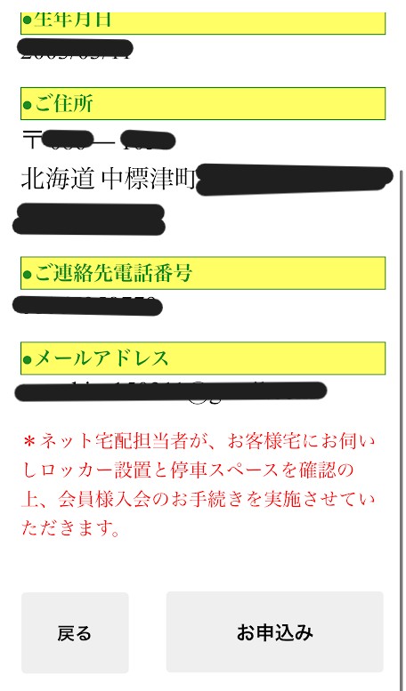 申し込みページ